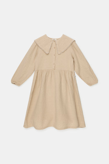 ¡Presentamos nuestro vestido texturizado hecho de algodón orgánico! Este conjunto de gasa presenta un hermoso cuello de babero y una tapeta frontal con botones para ponérselo fácilmente. Los puños elásticos hacen que sea cómodo para que tu pequeña se mueva. Con una costura fruncida en la parte superior, ofrece un volumen adicional que agrega un toque de estilo. Puedes estar segura de que la tela de este vestido de gasa para niña está certificada por GOTS y OEKO-TEX. Elige entre gris oscuro, mostaza, stone o rosa.