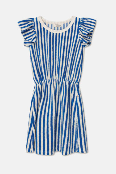 VESTIDO CON ESTAMPADO RAYAS Y VOLANTES DE RIZO