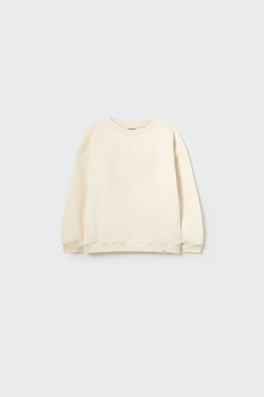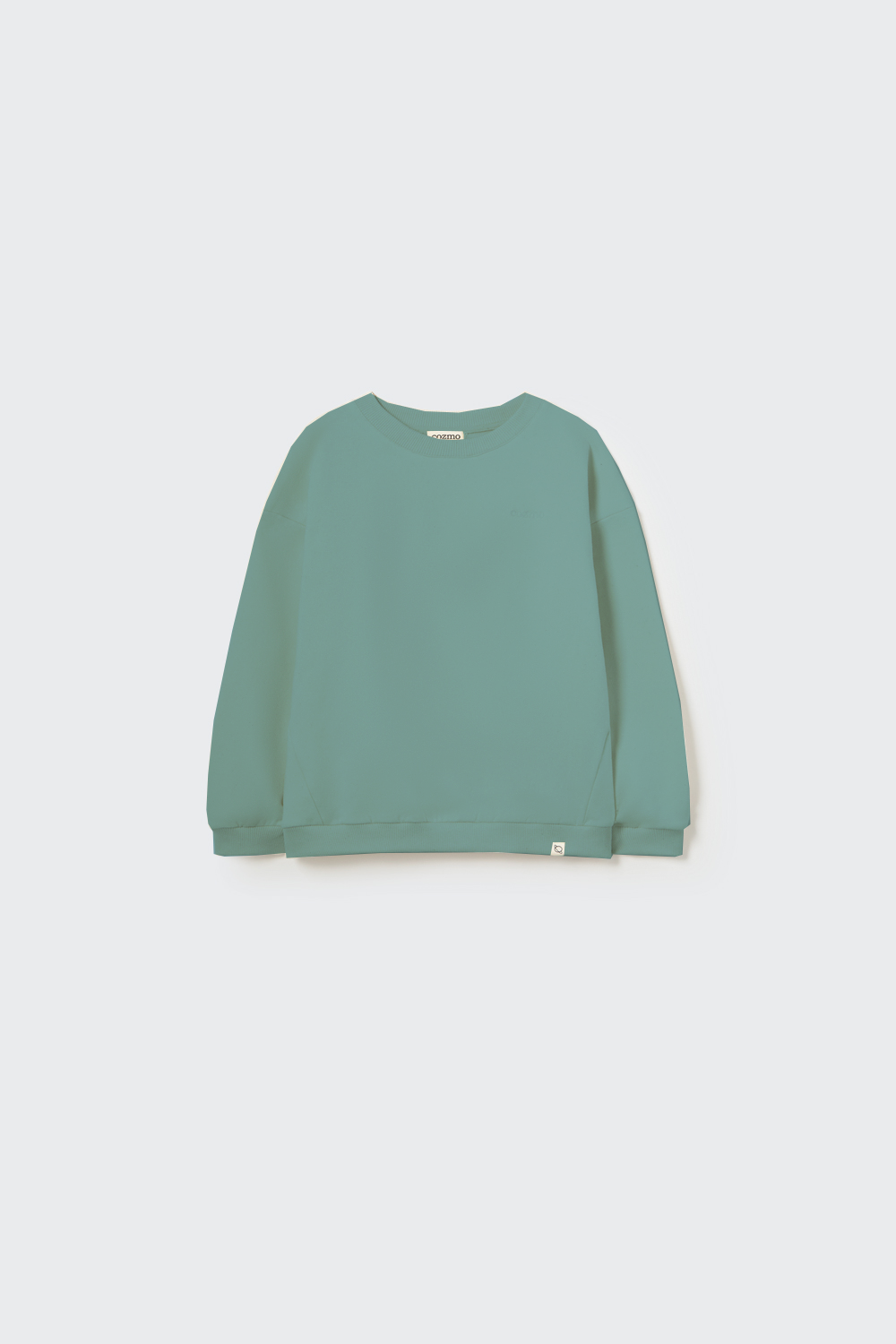 Esta sudadera forma parte de la colección de ropa infantil de algodón orgánico de Cozmo y está hecha en felpa perchada de alta calidad. Cuenta con ribetes acanalados en cuello, puños y dobladillo, y costuras laterales delanteras. Por fuera es lisa y por dentro suave y cálida, perfecta para el día a día.