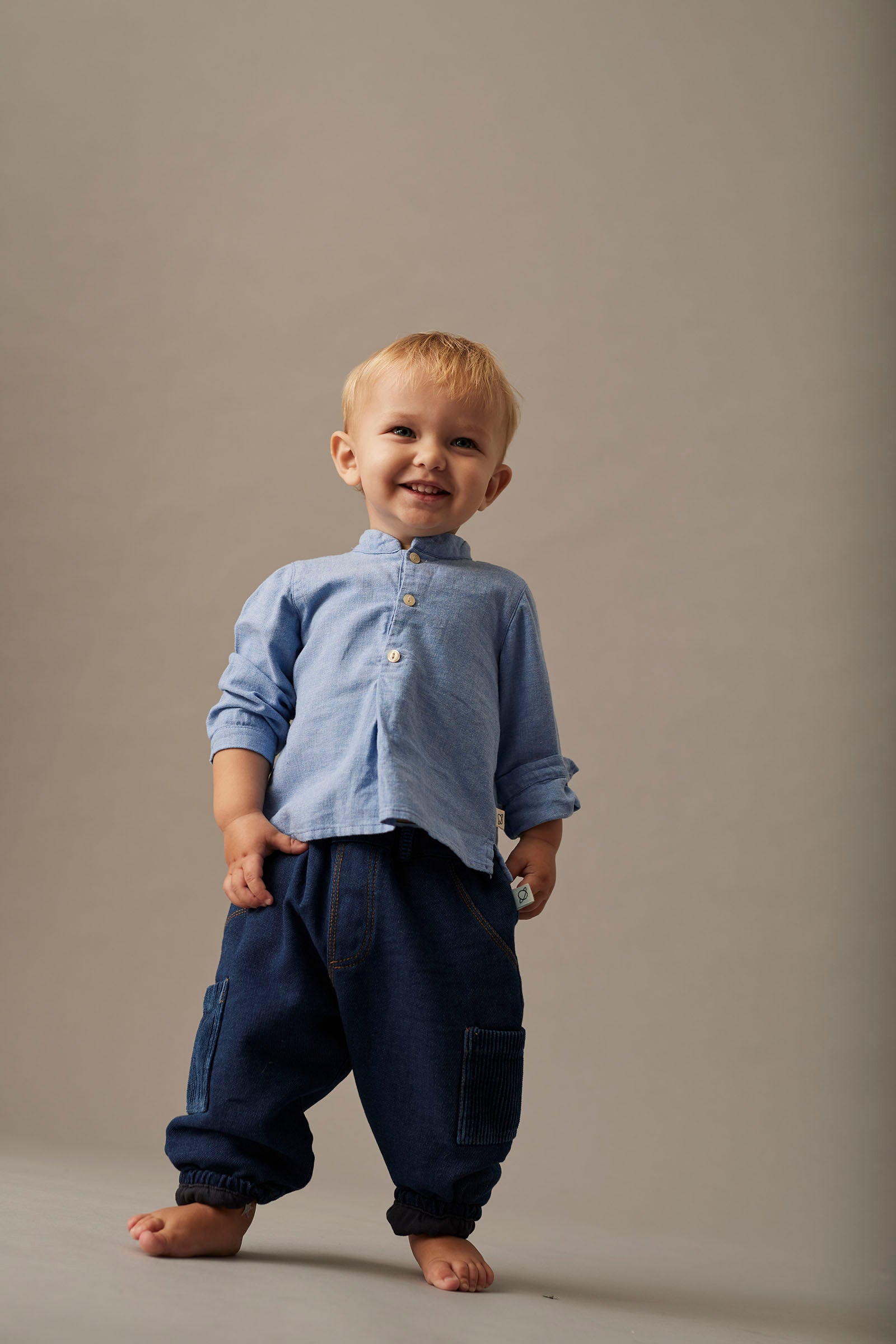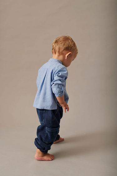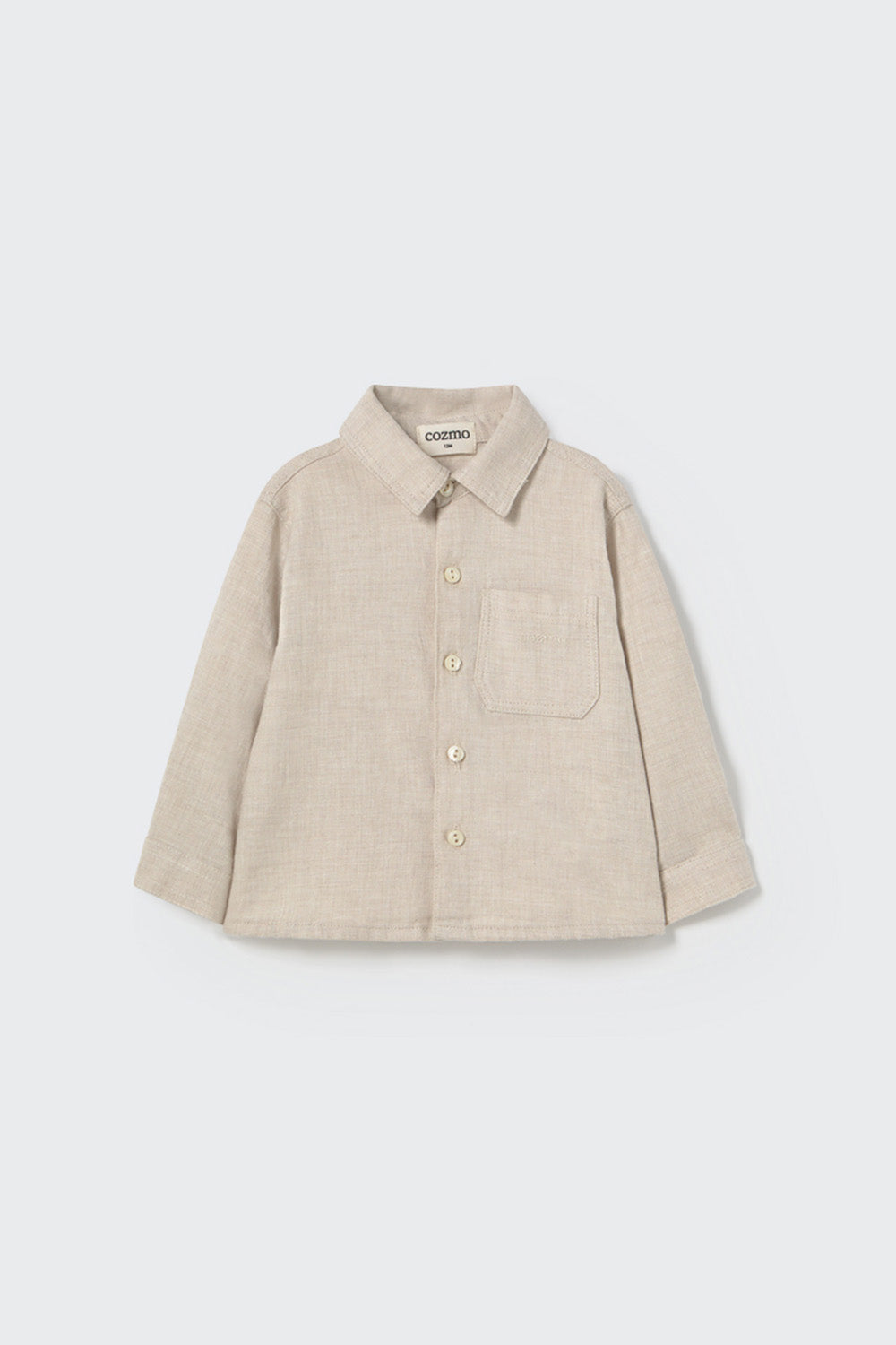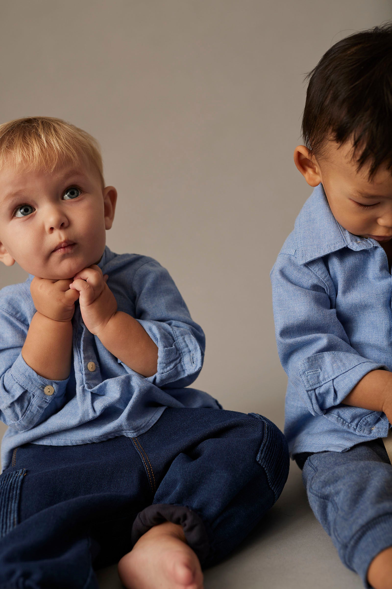 This baby boy shirt is made from cotton flannel with a mélange effect, crafted from 100% sustainable cotton. It features a classic collar, a button-down front placket, and a chest patch pocket with “Cozmo” embroidered on it. Buttoned cuffs offer a secure fit. Fully lined with a soft brushed knit for added warmth and comfort.