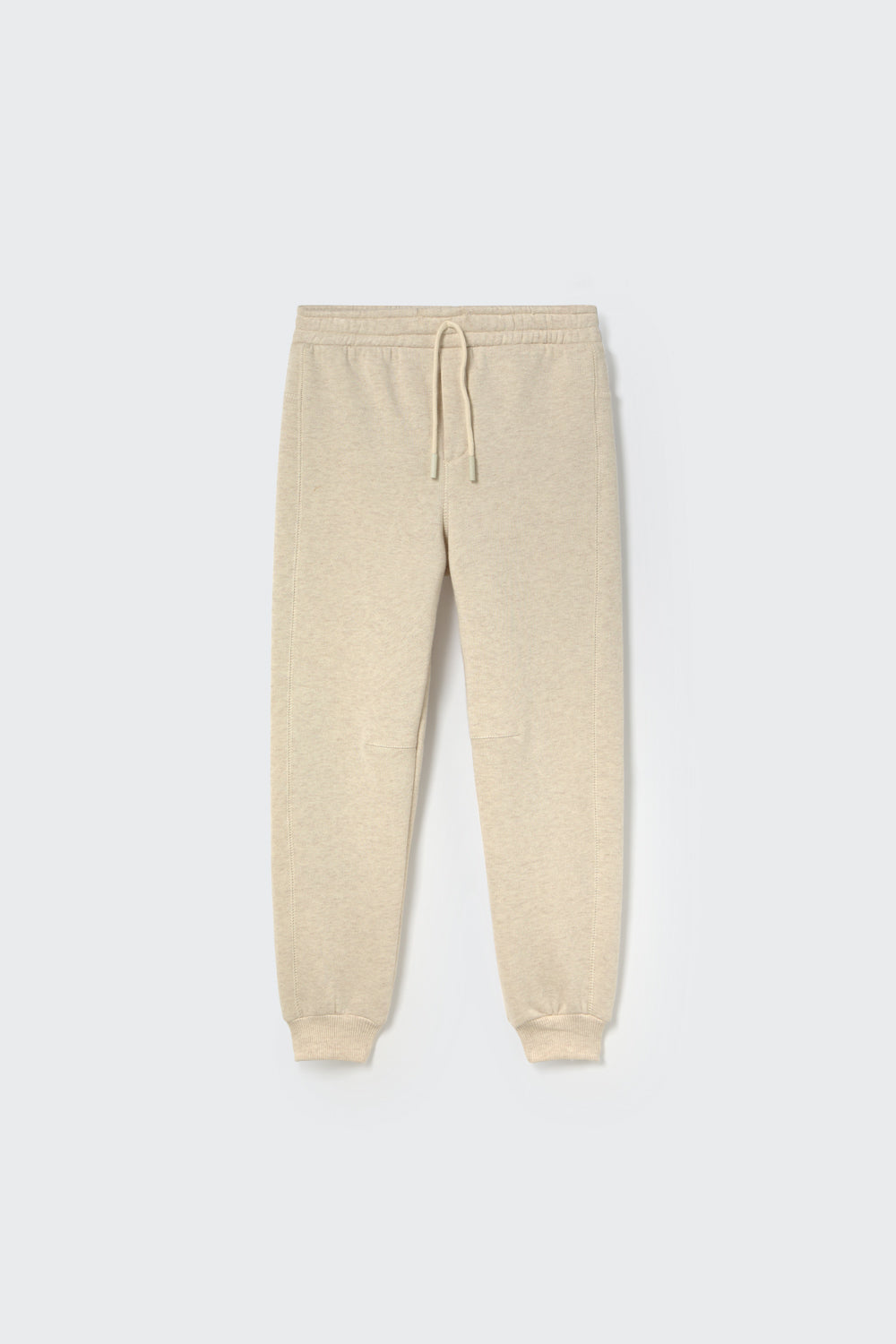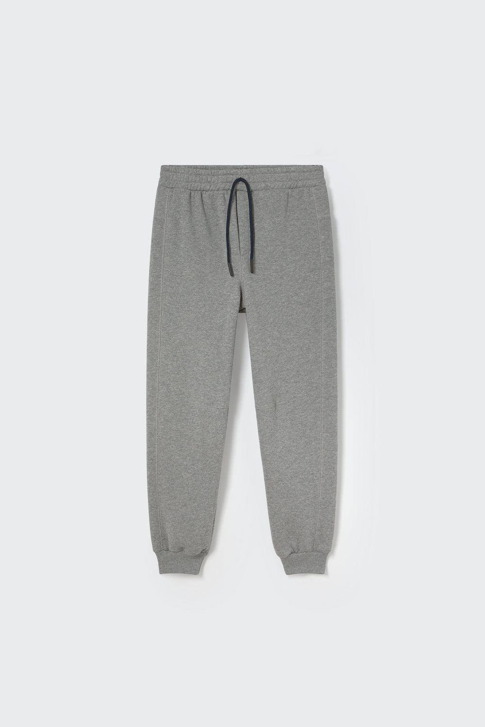 These kids’ pants are made from brushed fleece with mélange yarn, offering an exceptionally warm and soft feel. They feature an adjustable elastic waistband with a drawstring, a mock fly, and a central seam. Slightly forward side seams and a back yoke provide added structure. Finished with ribbed hems and a back patch pocket for everyday comfort.