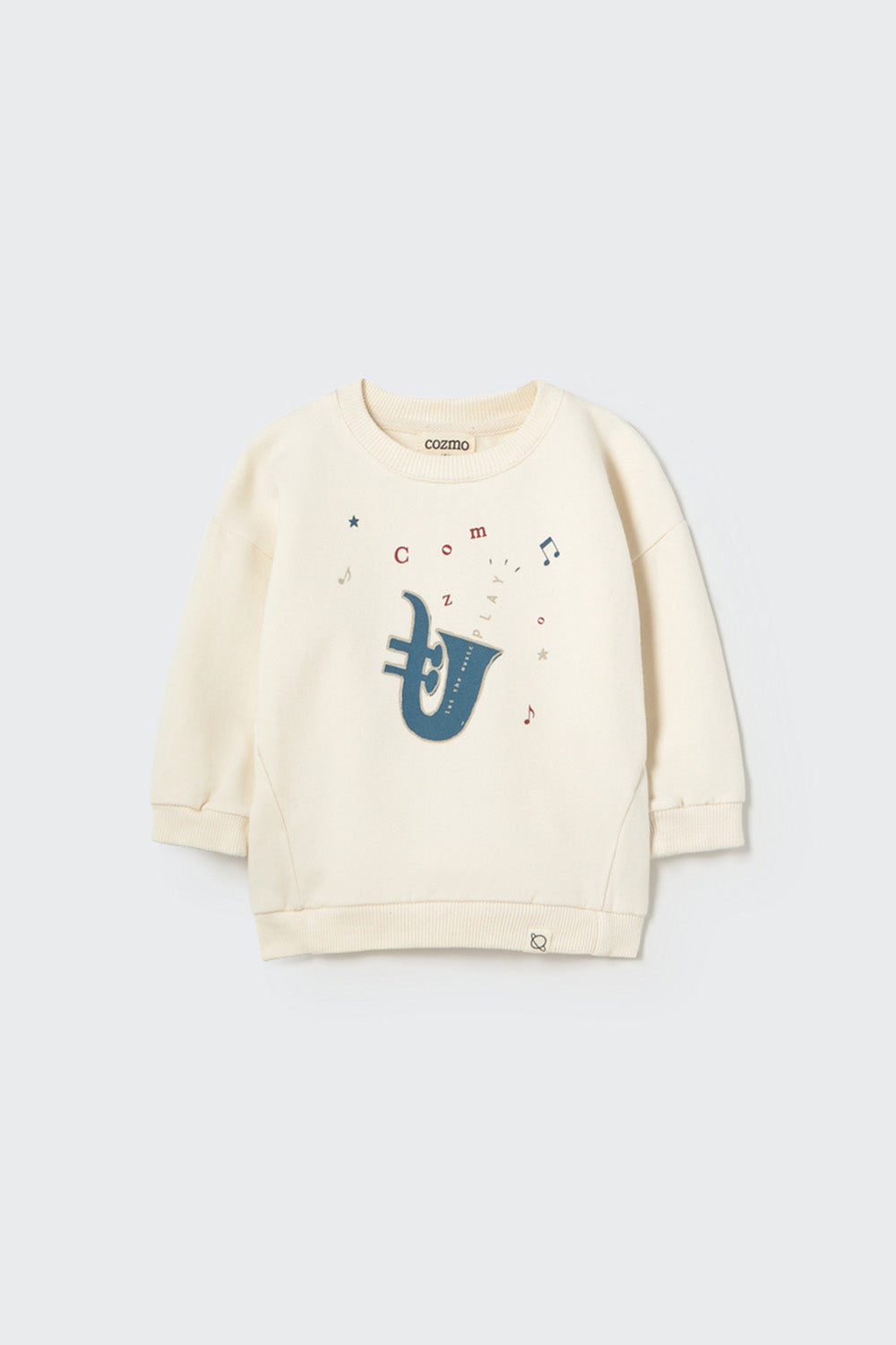 Part of Cozmo’s organic cotton baby clothes collection, this baby sweatshirt is crafted from premium brushed fleece to provide extra warmth and comfort. It features ribbed trims at the neck, cuffs, and hem, with forward side seams for a tailored fit. A musical-themed graphic print decorates the chest. Smooth on the outside and soft, warm, and cozy on the inside, it’s perfect for keeping your baby comfortable all day.