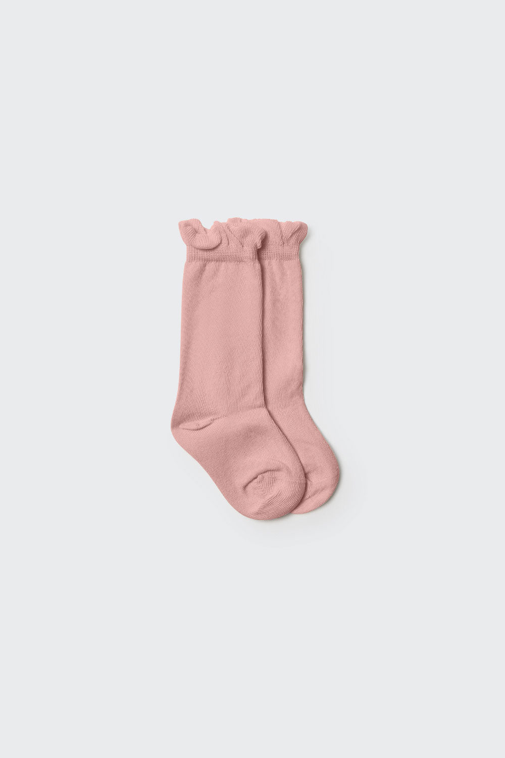 Socks made from warm, GOTS-certified organic combed cotton. They feature a ruffle trim at the cuff and offer a snug, flexible fit—perfect for keeping baby girls cozy and comfortable.