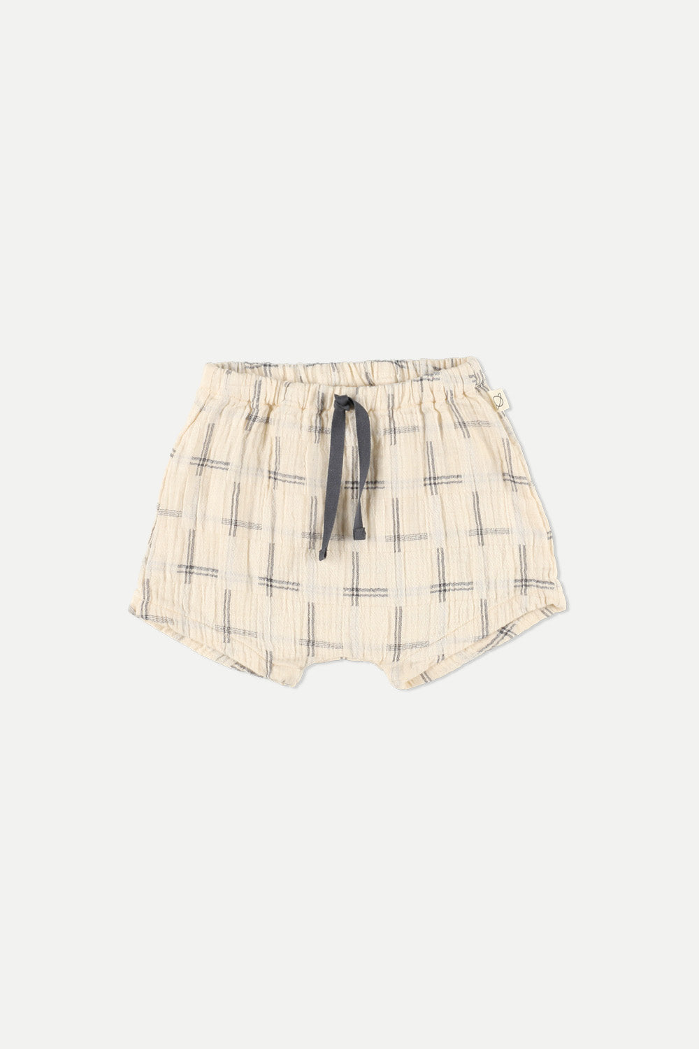 Shorts in airy organic cotton muslin. Elasticized waist with a decorative drawstring. Double-faced with a plaid pattern. Garment-dyed. 96% organic cotton, 4% cotton. Woven