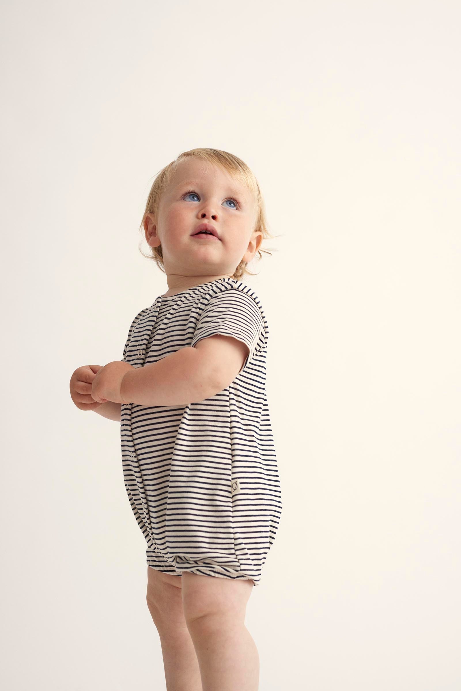 • Striped baby jumpsuit in light organic slub cotton with a pleasant, cool feel.