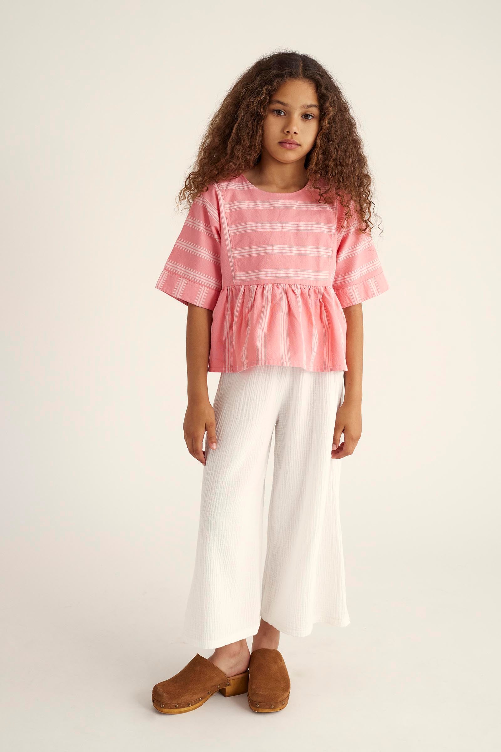 Unleash your little girl’s style with our delightful Organic Striped Top! Crafted from luxuriously soft cotton, this charming blouse ensures all-day comfort while making her shine brighter than ever. The playful contrasting stripes add a splash of fun to her wardrobe, and the gathered upper section creates that perfect, trendy silhouette she’ll adore. With a sweet teardrop closure at the back for easy dressing, mornings just got a whole lot smoother! Elevate her fashion game and watch her twirl in joy—this top is sure to become a favorite for both of you!
