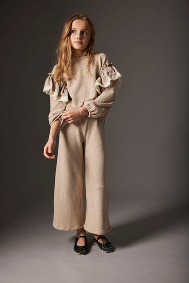Girls’ pants in a buttery-soft knit with an elasticized waistband and wide legs for comfortable movement. Brushed inside and out to provide a warm, toasty finish—perfect for keeping her cozy throughout the day.