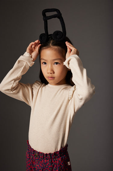 This girls' sweater is made from extra soft, warm ribbed cotton, perfect for keeping them cozy. It features a round neckline and charming ruffles over the shoulders in flannel with delicate lettuce-edge trim. Long sleeves and matching lettuce-edge trims at the cuffs and hem.