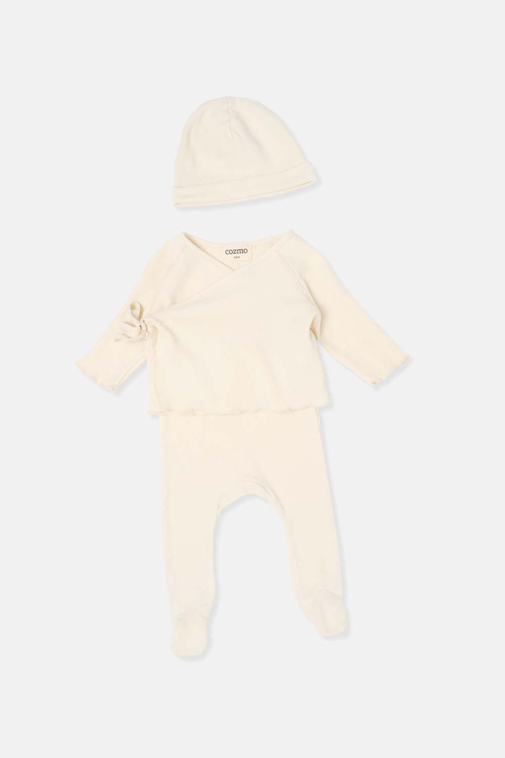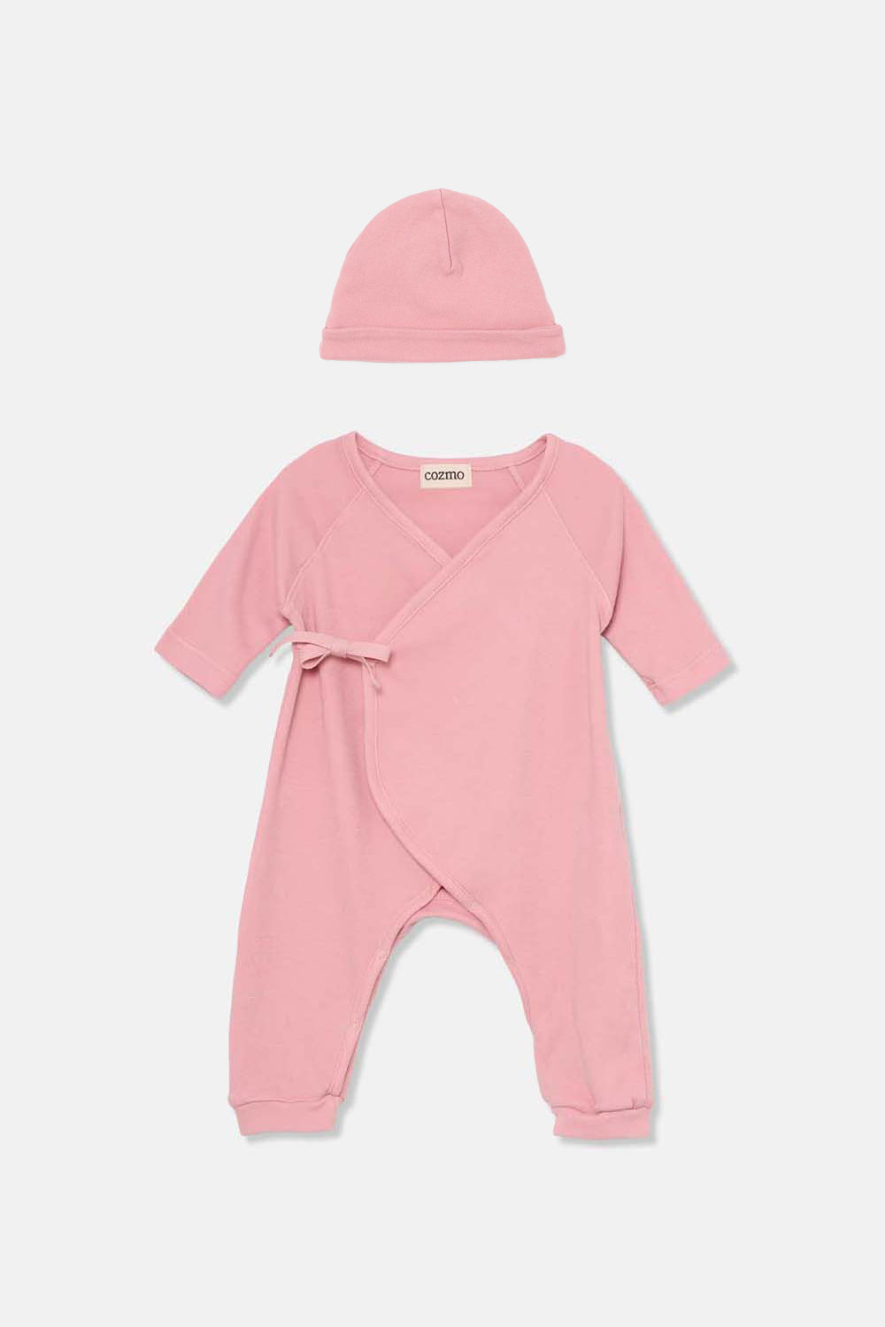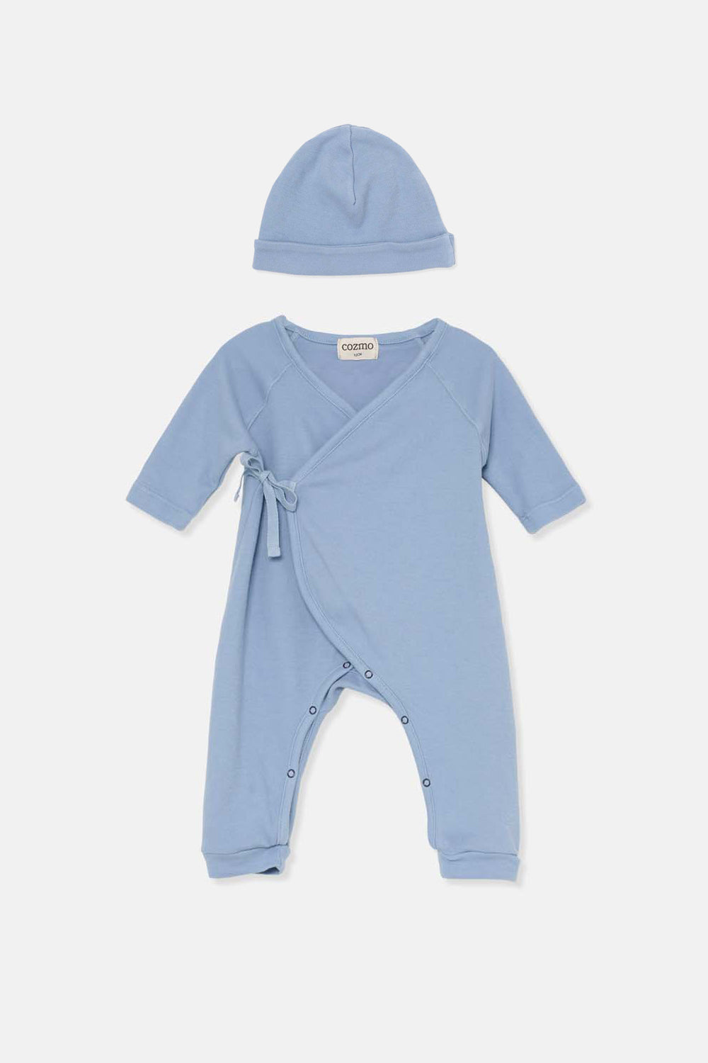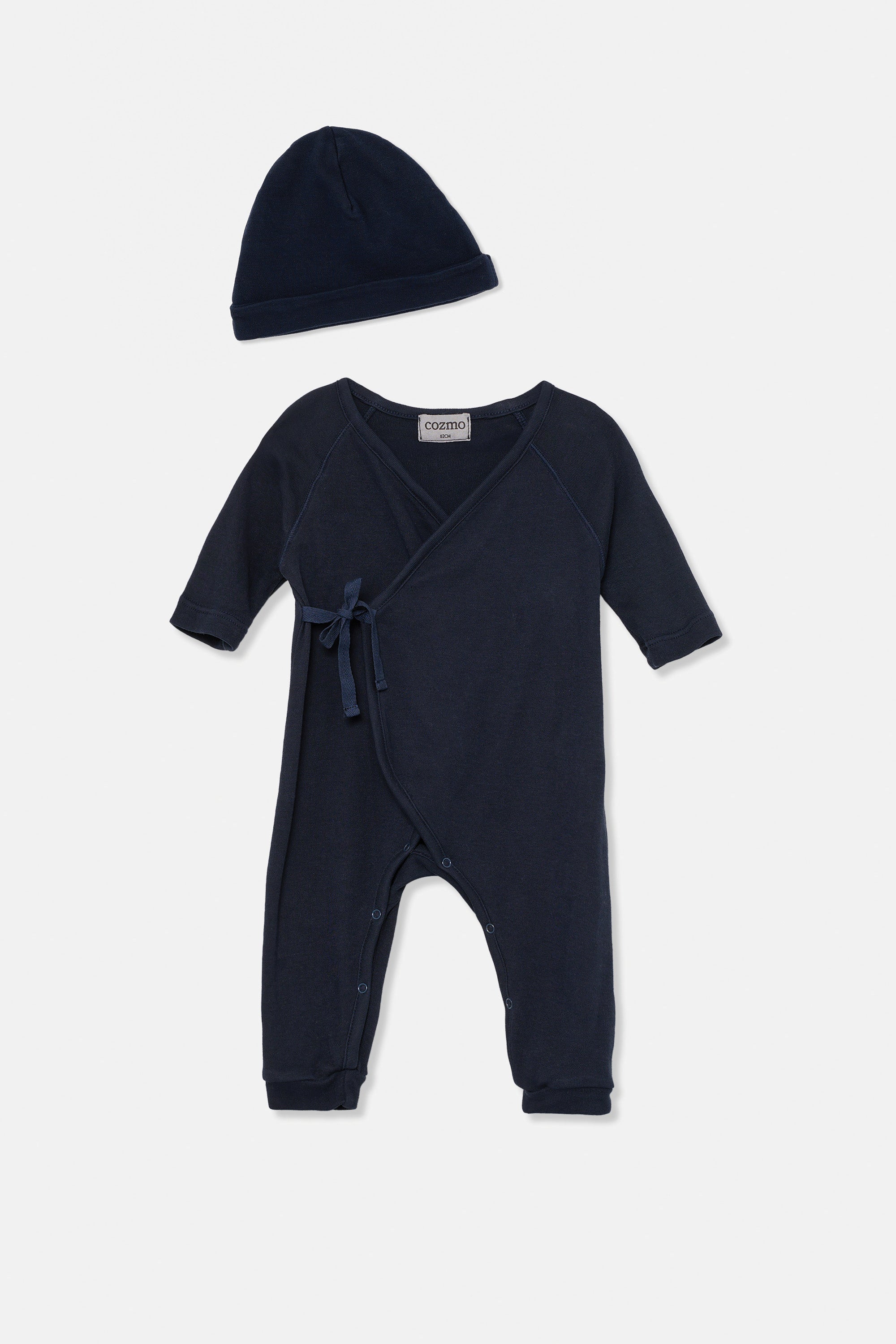 Crafted for newborn comfort, our jumpsuit pairs softness with style. The cotton is double-faced, promoting a snug feel without excess weight. Its outer layer is brushed, enhancing the coziness. You will also find a newborn beanie, creating a cuddly newborn set. Lightweight and inviting, this ensemble ensures a delightful experience for your little one.