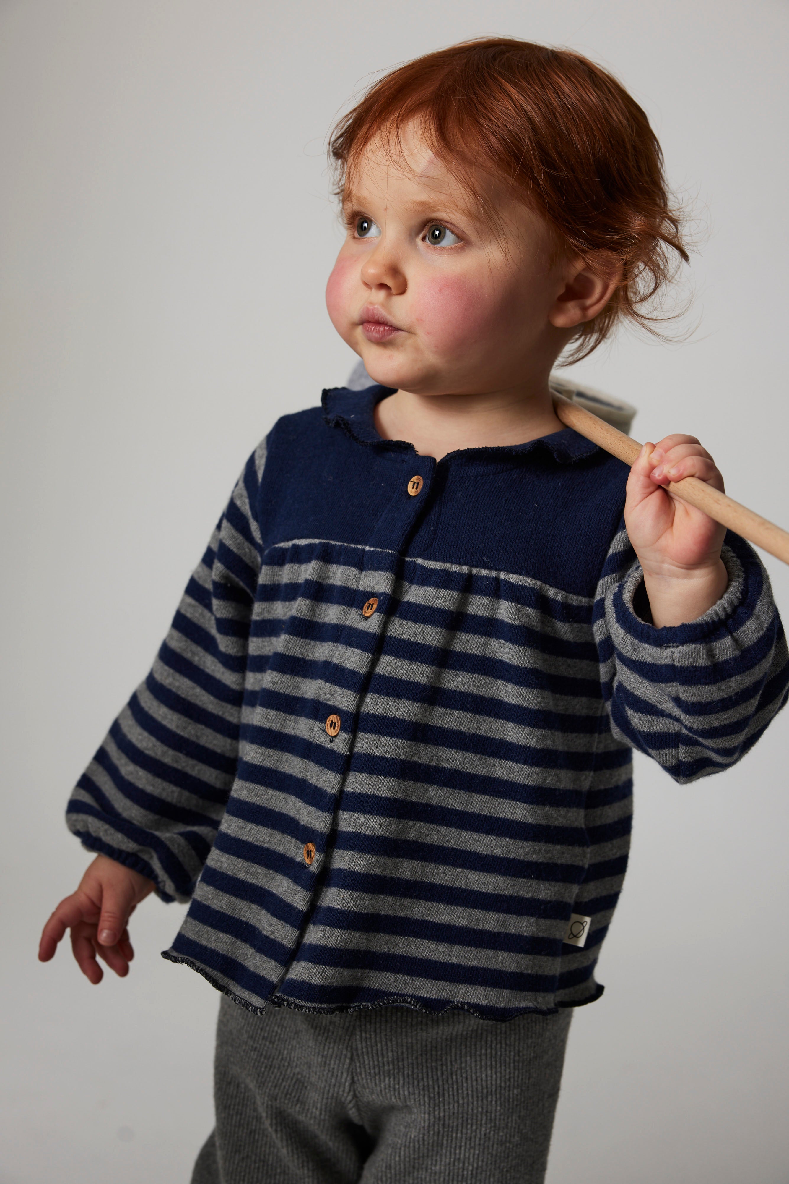 Warm up your little one in our striped baby cardigan, crafted from super-soft, warm, and comfy cotton. This knitted cardigan is ideal for cooler days, featuring a cozy fit and playful stripes. It's a blend of comfort and casual style that kids and parents will love.