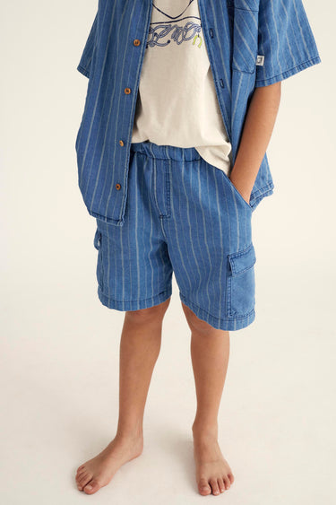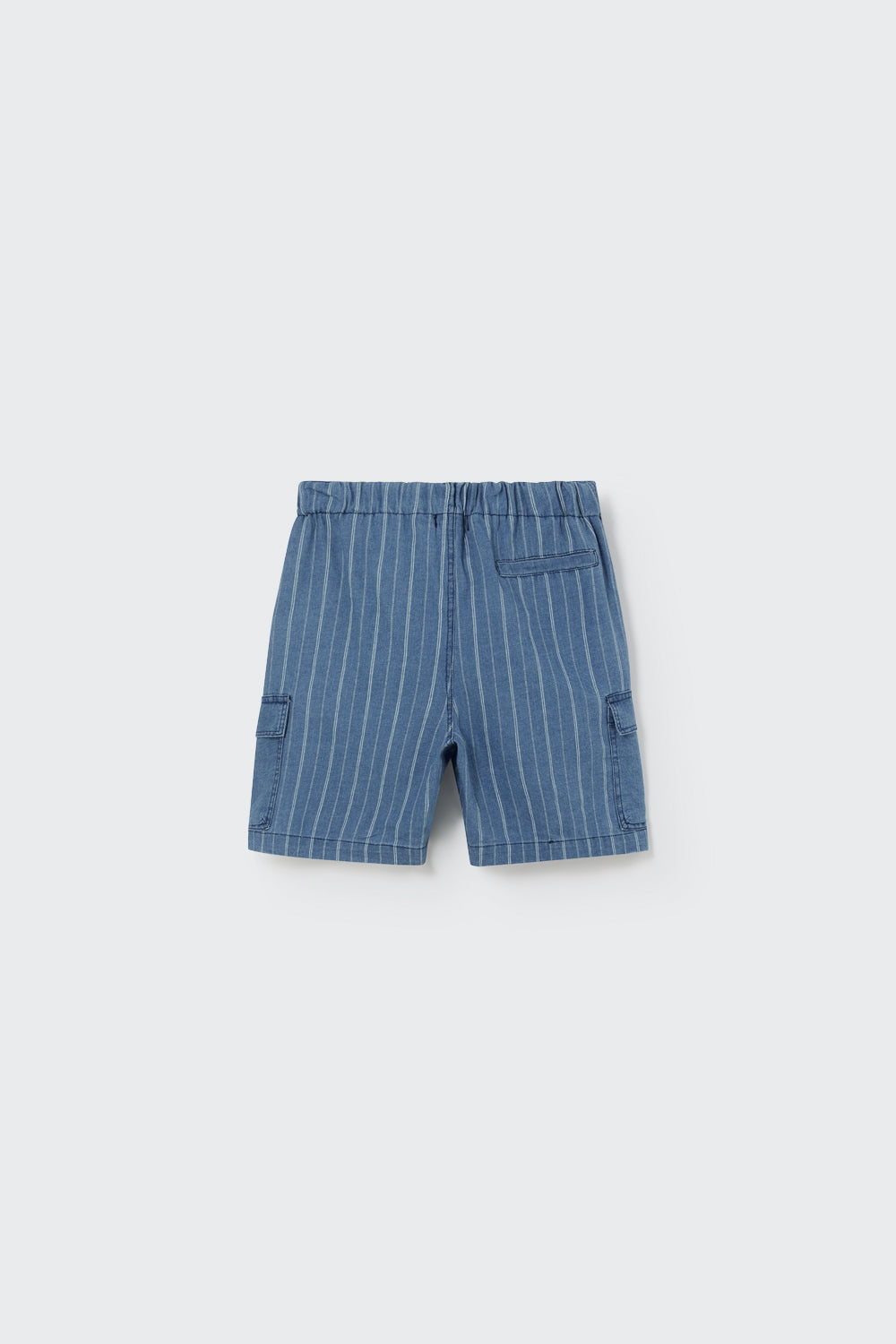 - Striped denim Bermuda shorts for boys in extra soft and comfy cotton.