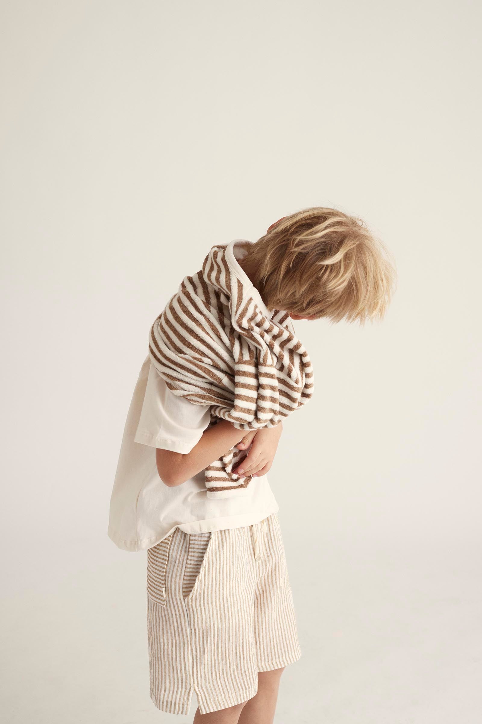 Get ready for endless summer adventures with our charming Striped Bermuda Shorts for boys! Crafted from soft, lightweight cotton gauze, these shorts are perfect for those sunny playdates and backyard barbecues. The elasticized waistband with an adjustable drawstring ensures a comfy fit as your little one grows—no more fidgeting during fun! Featuring diagonal side pockets to stash treasures and a stylish patch pocket at the back, these shorts combine practicality with playful style. Plus, they’re non-iron! So you can spend less time on laundry and more time making memories. Available in sizes 2y to 12y, these shorts will become a beloved staple in your boy's wardrobe. Let him run wild in comfort and style this season—because every little explorer deserves some cozy flair!