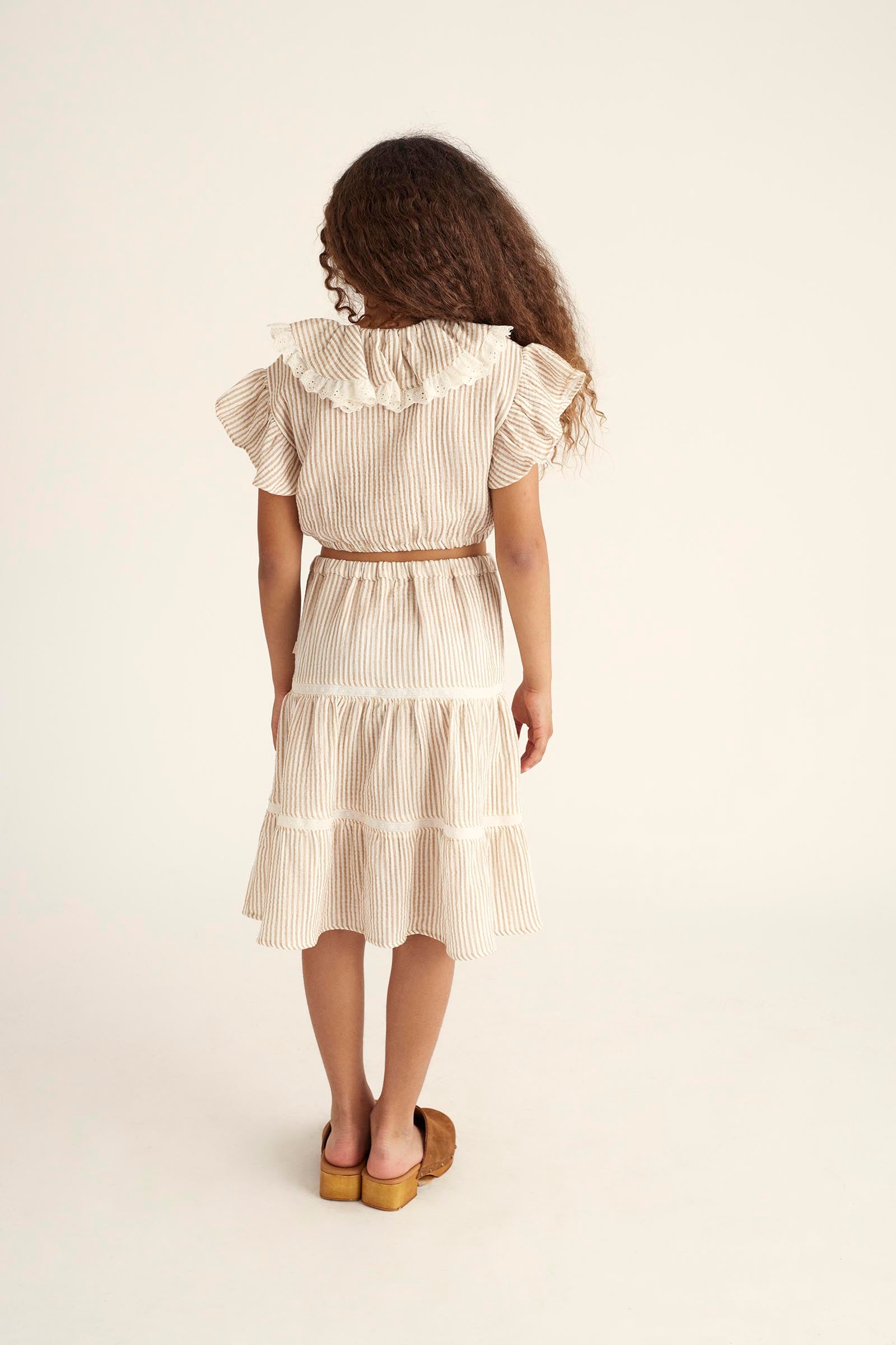 - Striped skirt for girls with eyelet details in soft and light cotton gauze.