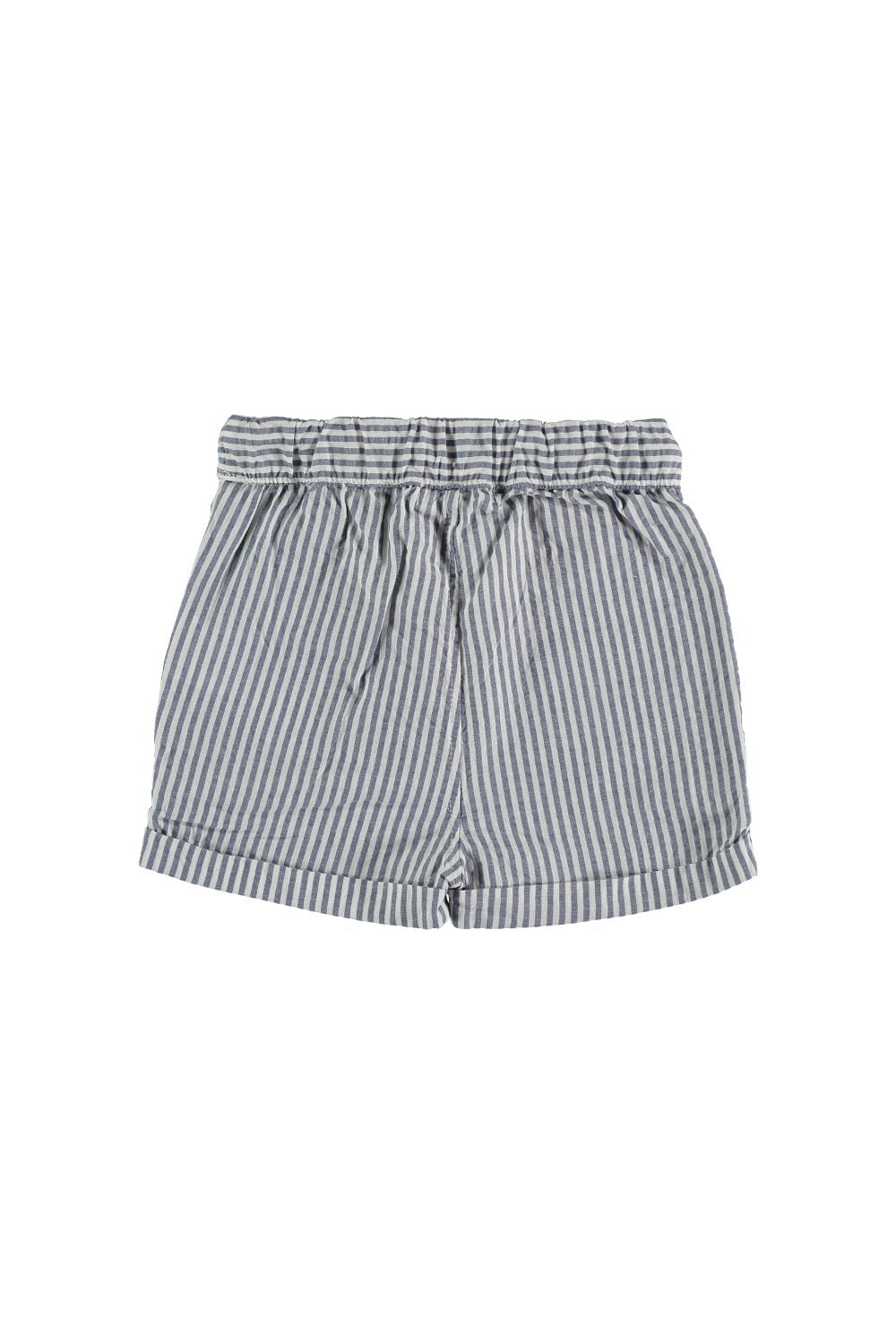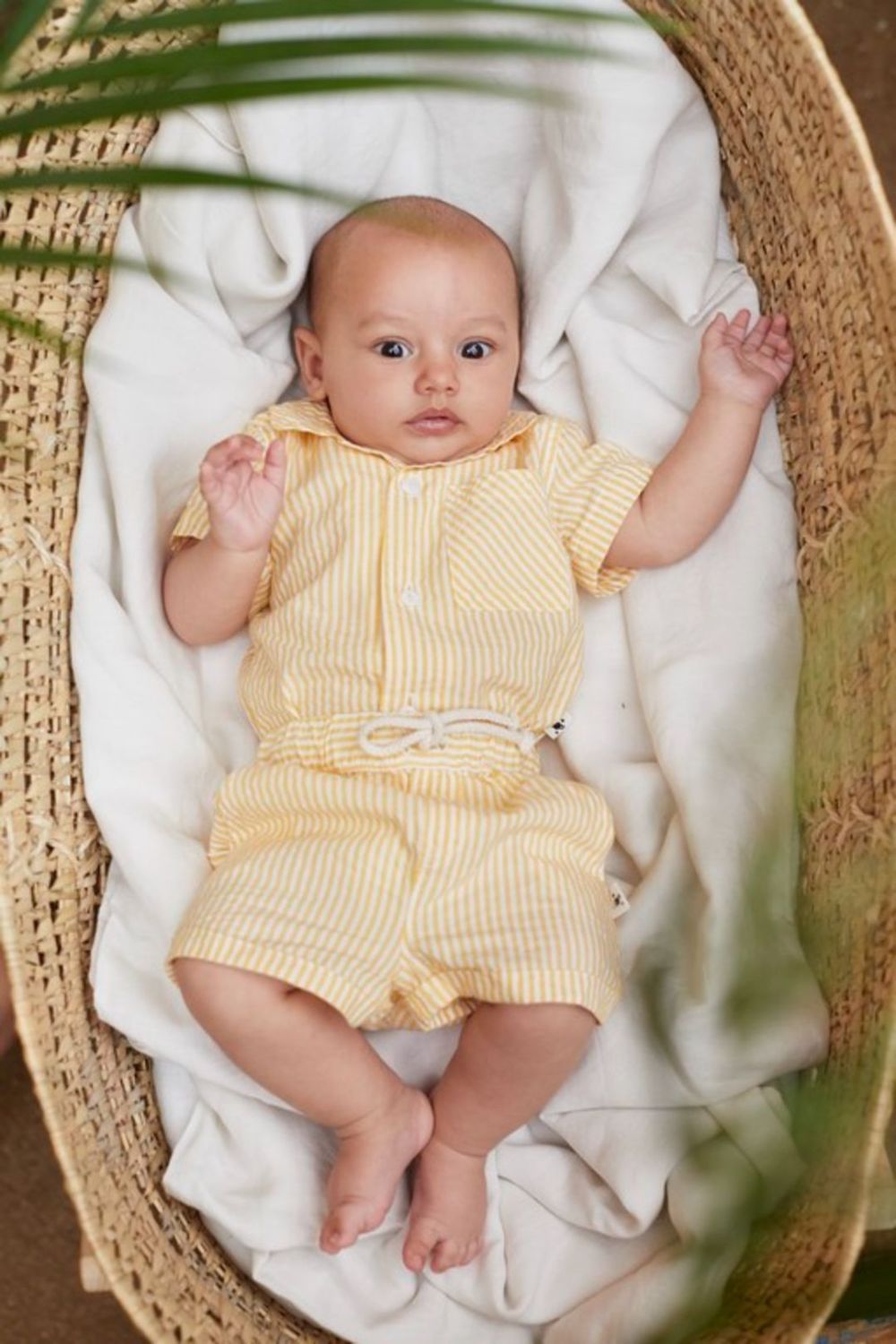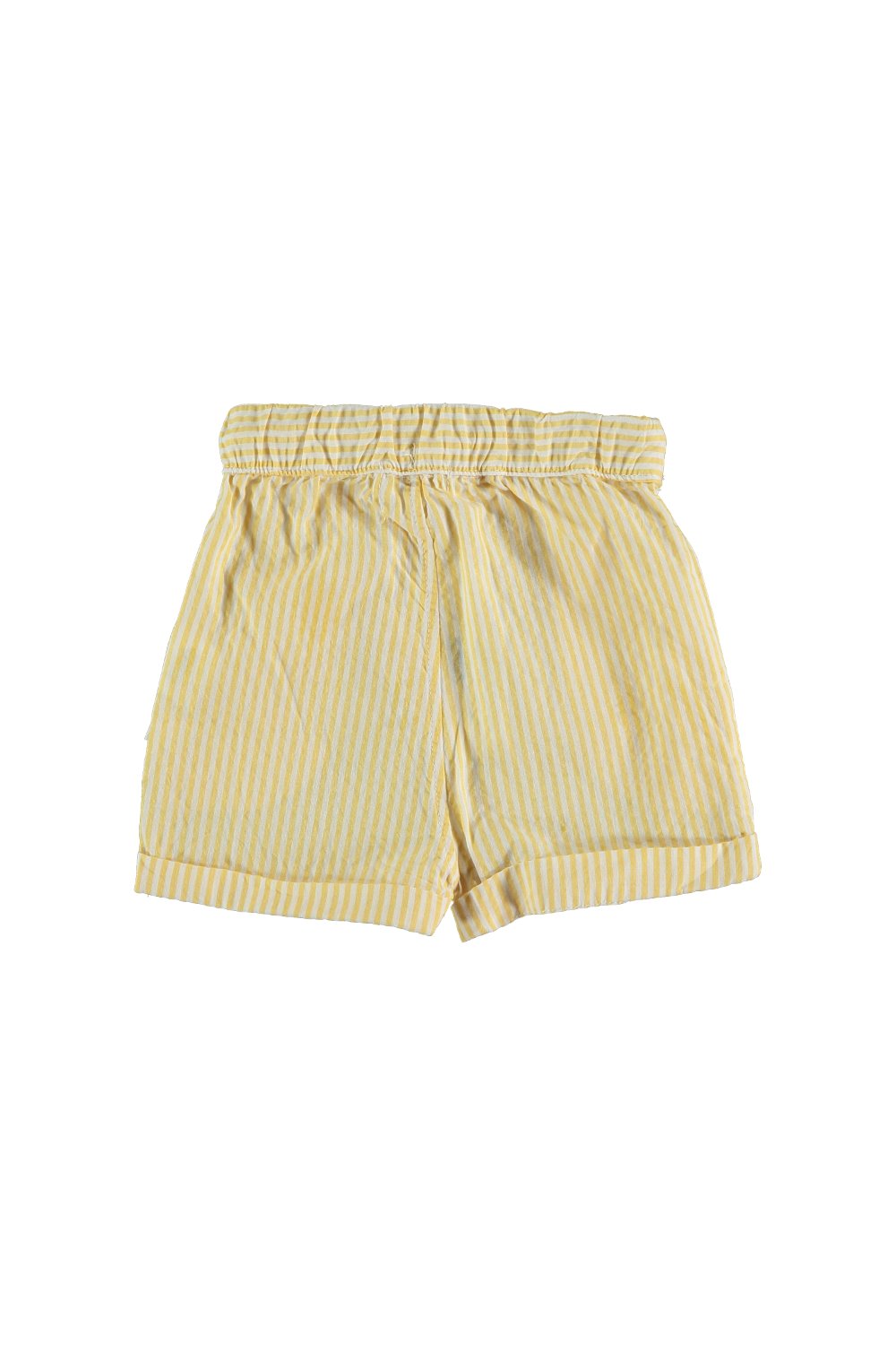 These baby seersucker shorts are a great way to beat the heat in style. Dress it up or down, and enjoy styling them in different ways. You can pair these baby seersucker shorts with a basic tee or their matching shirts. They feature an elastic waistband with a decorative drawstring, diagonal side pockets, and rolled-up hems. These striped baby Bermuda shorts are made of 71% cotton and 20% viscose. Available in pink, yellow, and royal blue for a fresh summer look.