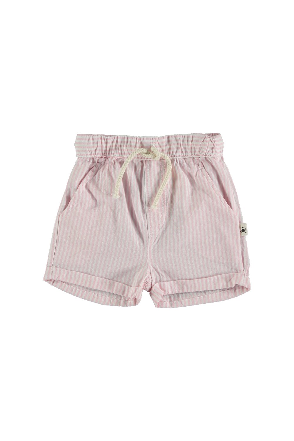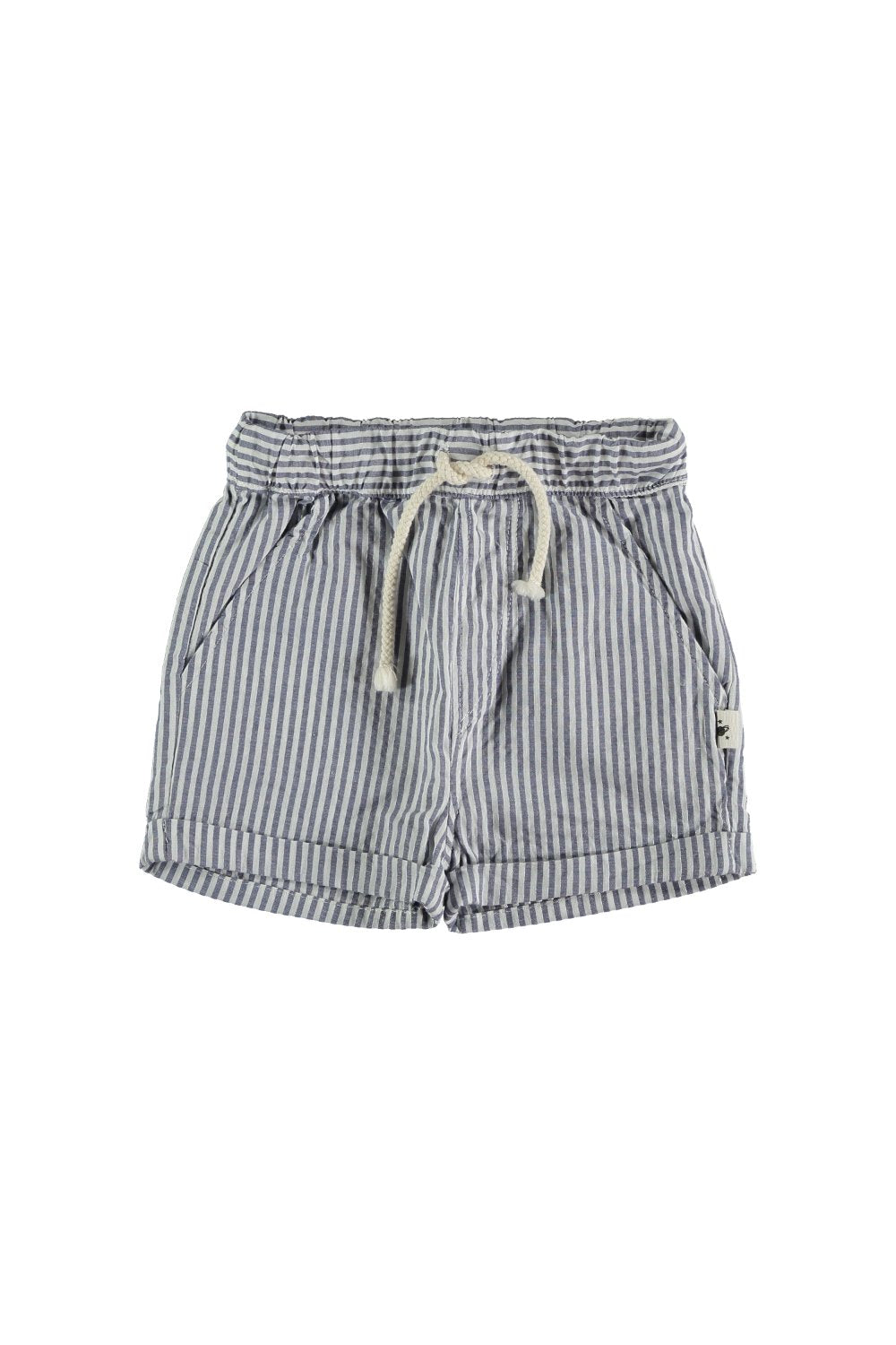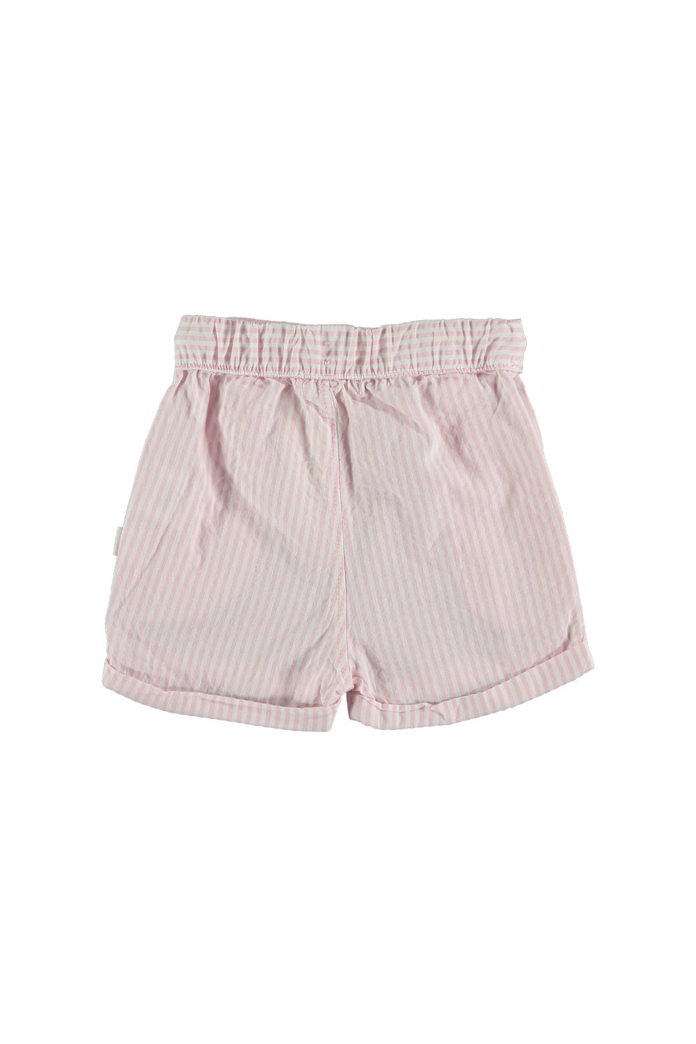 These baby seersucker shorts are a great way to beat the heat in style. Dress it up or down, and enjoy styling them in different ways. You can pair these baby seersucker shorts with a basic tee or their matching shirts. They feature an elastic waistband with a decorative drawstring, diagonal side pockets, and rolled-up hems. These striped baby Bermuda shorts are made of 71% cotton and 20% viscose. Available in pink, yellow, and royal blue for a fresh summer look.