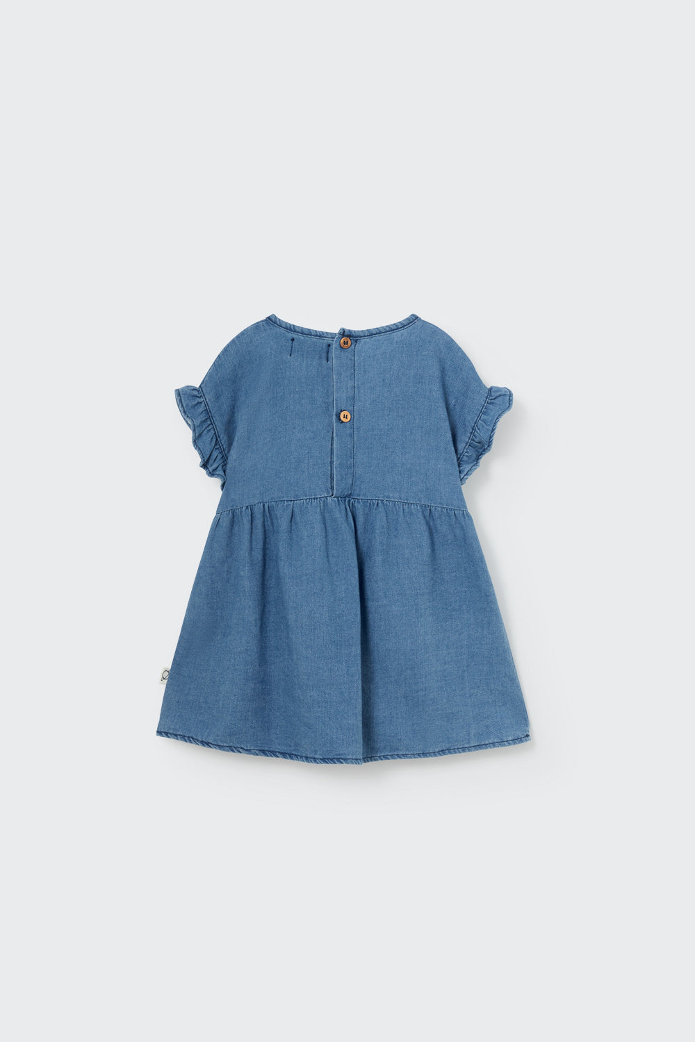 Twirl into style with our baby girl denim dress—a delightful wardrobe essential for your little one! Crafted from the softest twill cotton, this charming dress features a round neckline and flutter sleeves that add just the right amount of whimsy. The gathered upper section and smocking details at the chest create an adorable fit that's perfect for all her adventures. With its washed denim effect, your baby will shine brighter than ever during playdates or family outings. Available in sizes from infants to toddlers, this dress is made for unforgettable moments.