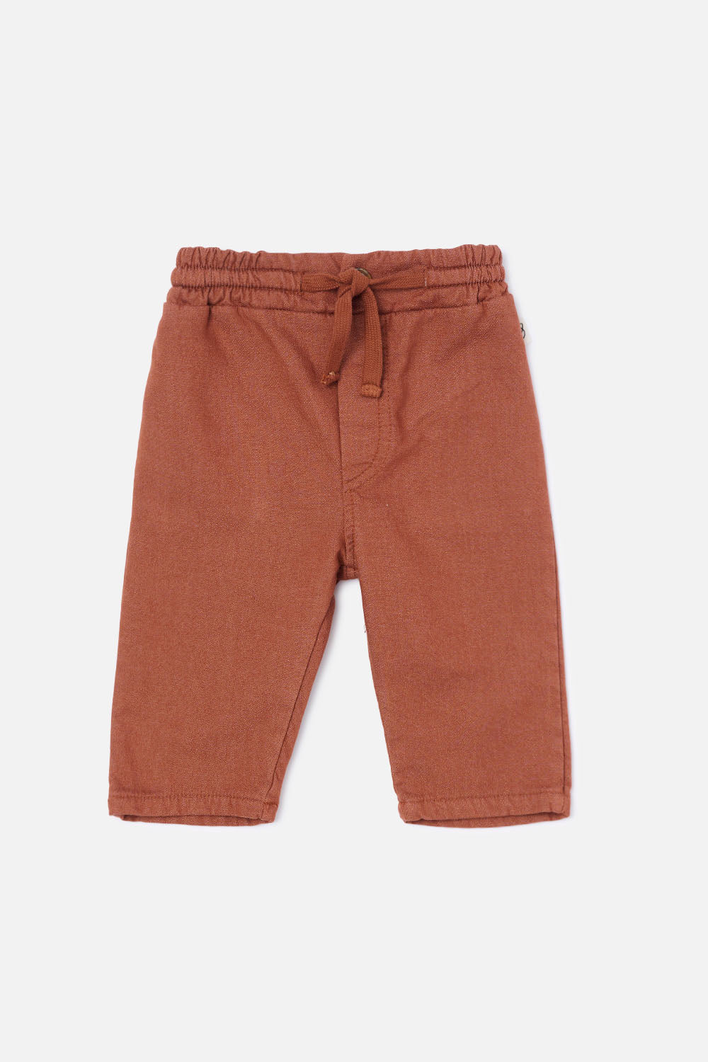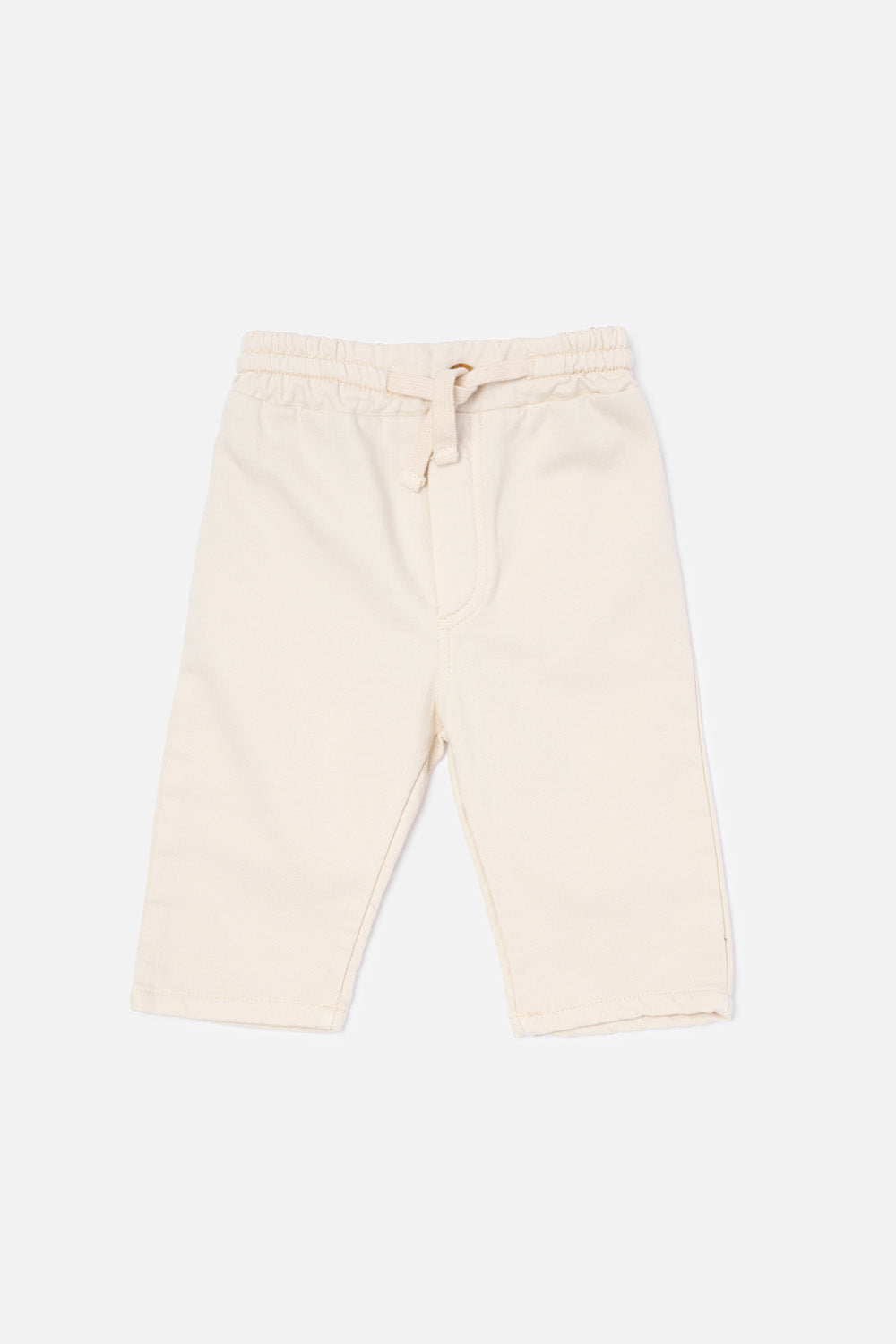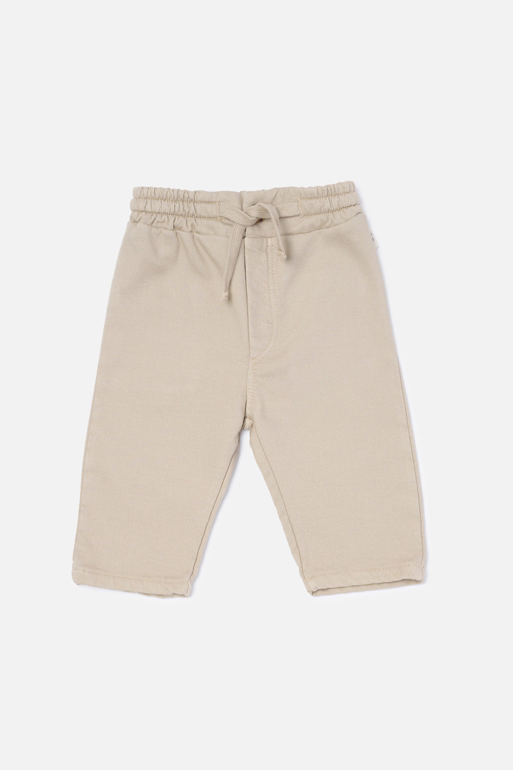 Twill pants in a plush texture with elastic waistband and adjustable drawstring. Patch pockets at back. Contrasting striped fabric at the back of the waistband. Elastic and brushed on the inside. 85% cotton, 12% polyester, 3% elasthane. Woven The fibers of this garment are certified as sustainable by the Better Cotton Initiative (BCI).
